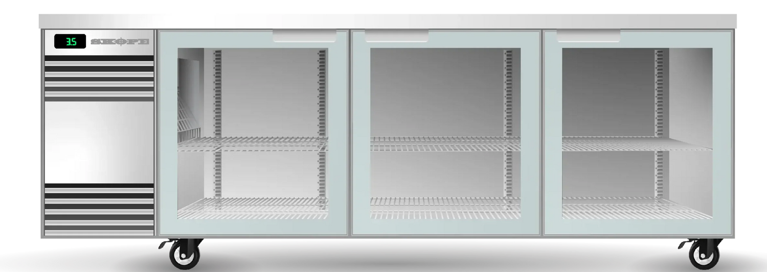 Skope CL.3.GSW.r-SS | Remote | BackBar | 3 Glass Swing Door | Fridge | Under bench Fridge | Commercial Under Bench Fridge