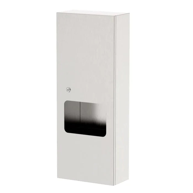 a premium, heavy-duty recessed paper towel dispenser with integrated 6.5L waste receptacle expertly designed for commercial, industrial, and institutional washrooms. This recessed wall-mounted paper towel dispenser features durable 304 grade satin stainless steel construction offering superior corrosion resistance, hygiene, and long-lasting performance in high-traffic environments such as hospitals, commercial kitchens, schools, and public washrooms. Equipped with a removable 6.5 litre waste bin, it facilitates efficient waste disposal and easy maintenance, while concealed fixings and a key-lockable mechanism ensure tamper resistance and a sleek, secure installation. The WA-PTDWR2-R’s design optimizes space by combining efficient paper towel dispensing and waste management in one compact, hygienic fixture, trusted by contractors, facility managers, and plumbing professionals for reliable, maintenance-friendly washroom solutions.