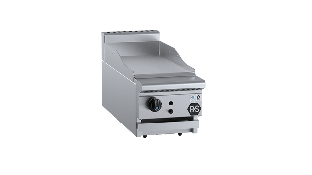 A top-tier, commercial-grade bench-mounted grill plate engineered for professional kitchens, catering, and foodservice environments. Featuring a durable heavy-duty mild steel grill plate (12mm thick) ensures even heat distribution and excellent heat retention for consistent cooking performance. The unit is powered by a 22MJ aluminised tubular burner per 300mm section, providing efficient and controllable flame output regulated by a multi-setting gas valve for precise heat control. Safety is prioritized with integrated flame failure safety devices and piezo ignition for reliable and secure operation. Constructed with a robust AISI 304 grade stainless steel frame, the GRP-3BM grill plate combines strength, corrosion resistance, and easy maintenance. It offers frontal access to all components, simplifying servicing and upkeep, and includes an easy-to-clean fat spillage tray to maintain hygiene during busy operations. With compact dimensions of approximately 300mm (W) x 425mm (H) x 840mm (D), it fits seamlessly into modern commercial settings where space efficiency and high-performance grilling are essential. The product is proudly Australian made and comes backed by a 24-month warranty, ensuring peace of mind and long-term reliability for professional chefs and caterers.