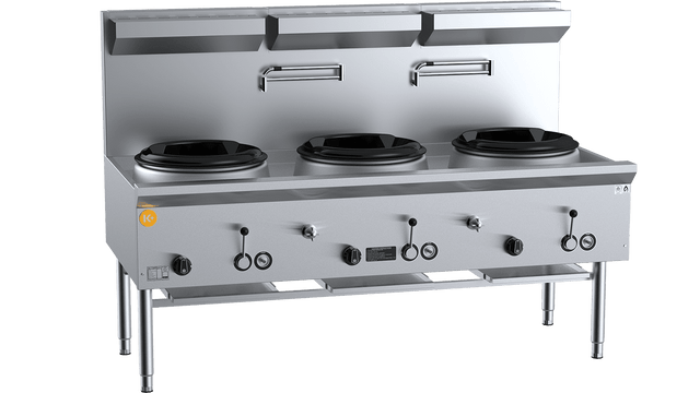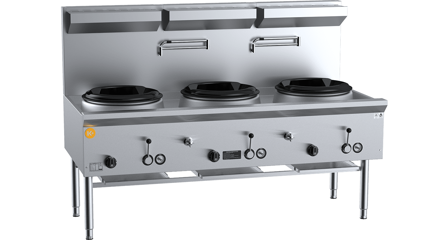 A premium commercial-grade three hole waterless wok table designed for professional kitchens, Asian restaurants, and high-output foodservice operations. Constructed from durable AISI 304 grade stainless steel external panels combined with a heavy-duty mild steel internal frame and a 1.5mm thick pressed top deck, this wok table offers exceptional corrosion resistance, hygienic surfaces, and robust durability to withstand intense commercial use and demanding kitchen environments.