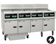 A top-tier, commercial-grade four-bank electric floor fryer expertly engineered for large-scale professional kitchens, restaurants, and busy catering operations. Featuring four spacious 14" x 14" fry pots with generous oil capacity, this high-capacity fryer allows simultaneous frying across multiple vats, delivering consistent, precise, and efficient cooking performance to meet demanding menu requirements and peak kitchen volume.