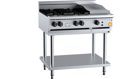 K+ Series KBT-SB4-GRP3 Combination Four Open Burners & 300mm Grill Plate On Stand