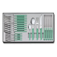 Table Set (Steak Knife), Pointed Tip Wavy 24 Piece - Mint by Victorinox is a stylish and practical cutlery collection designed to elevate everyday dining and special occasions. This 24-piece set includes 6 ultra-sharp steak knives with pointed wavy edges, perfect for effortlessly slicing through steaks and other meats with precision and ease.