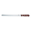Salmon Knife, Fluted Edge 30cm - Wood is a specialized kitchen knife designed for slicing salmon into the finest, thinnest pieces with exceptional precision. It features a 30 cm fluted (wavy) blade crafted from high carbon stainless steel that is flexible and sharp, allowing for smooth cuts that glide close to the bone without tearing the delicate fish. The blade is complemented by an ergonomic wood handle made from modified maple, offering a comfortable and secure grip with a natural wood grain finish that combines traditional aesthetics with practical durability. This Swiss-made salmon knife is part of the Victorinox Wood Collection, prized for ultrasharp blades paired with elegant wooden handles. It is not dishwasher safe and should be hand washed to preserve blade sharpness and handle quality. This knife delivers outstanding slicing performance for professional chefs and home cooks alike.