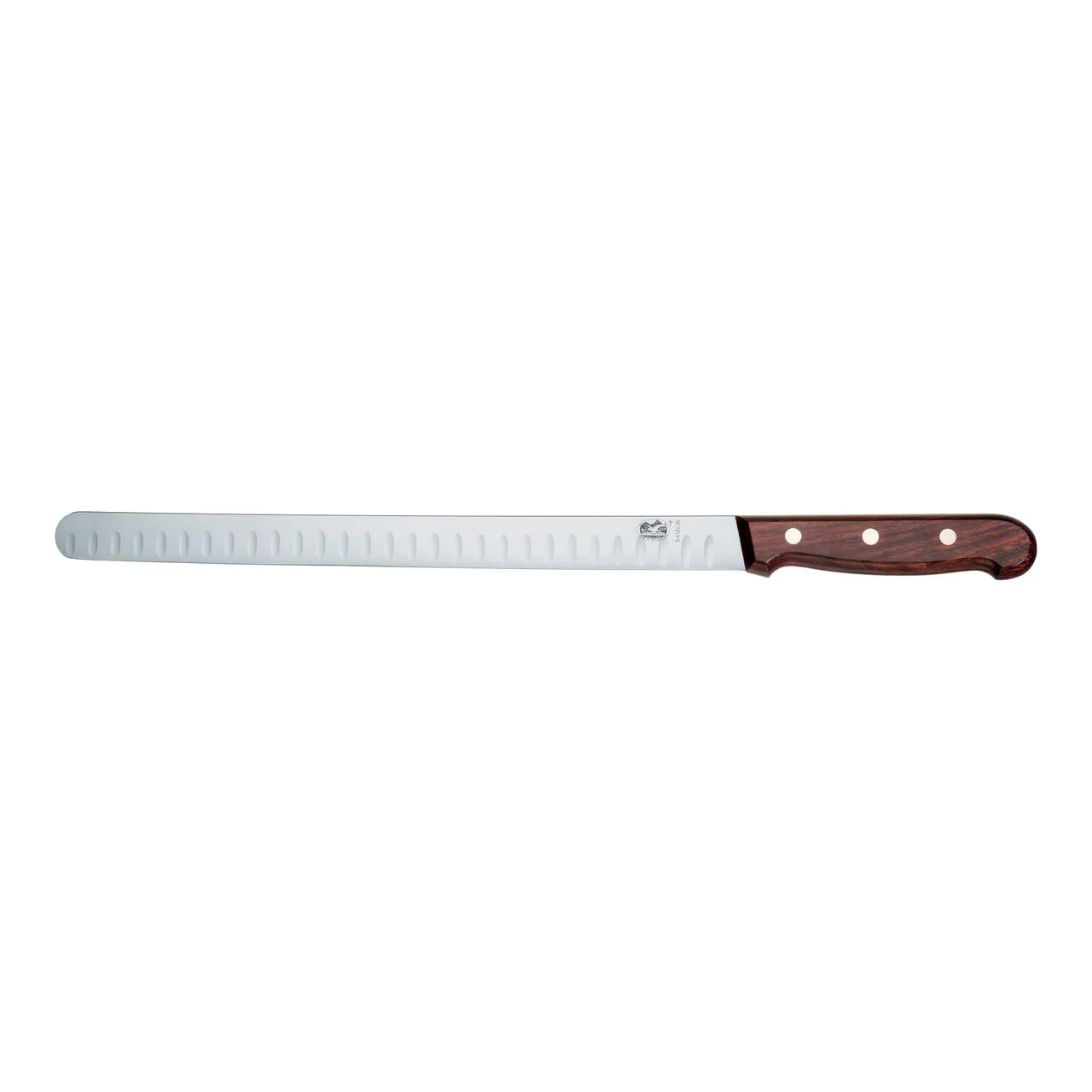 This 30cm wood-handled salmon knife with a fluted edge delivers precision slicing, ergonomic comfort, and trusted Swiss craftsmanship, making it an essential tool for beautifully cutting salmon and other delicate fish preparations.