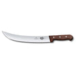 Cimeter Knife, Curved Wide 25cm - Wood is a versatile butcher’s knife designed for precise trimming, portioning, and slicing large meat cuts with ease. Featuring a 25 cm long curved wide blade made from high-carbon stainless steel, it ensures sharp, smooth cuts that allow for close trimming to the bone with minimal effort. The knife’s ergonomic handle is crafted from natural wood, providing a comfortable, secure grip along with a striking, unique wood grain finish. Weighing roughly 200 to 230 grams, it offers excellent balance and durability for professional and home kitchen use. This Swiss-made knife is dishwasher safe though hand washing is recommended to preserve the wooden handle’s quality. It embodies Swiss craftsmanship, durability, and functional elegance for meat preparation specialists.