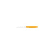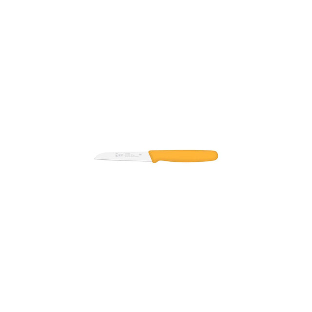 A high-quality kitchen tool designed for precise peeling, trimming, and intricate cutting tasks in both professional and home kitchens. Featuring a sharp 100mm stainless steel blade enriched with carbon, chromium, and molybdenum, this knife delivers excellent hardness, superior edge retention, and exceptional corrosion resistance for reliable, long-lasting sharpness. The blade is expertly forged to enhance strength and cutting accuracy for delicate work. Equipped with an ergonomic, non-slip yellow handle made from thermoplastic elastomer (Santoprene), it provides outstanding comfort, secure grip, and control during extended food preparation. The bright yellow color-coded handle is ideal for kitchens aiming to reduce cross-contamination risks by clearly identifying the knife’s specific purpose. Perfect for those searching for a forged stainless steel paring knife with a 100mm blade, durable construction, ergonomic non-slip yellow handle, and excellent edge retention, the Ivo Professional "55000" Paring Knife Yellow combines precision, safety, and comfort for efficient culinary performance.