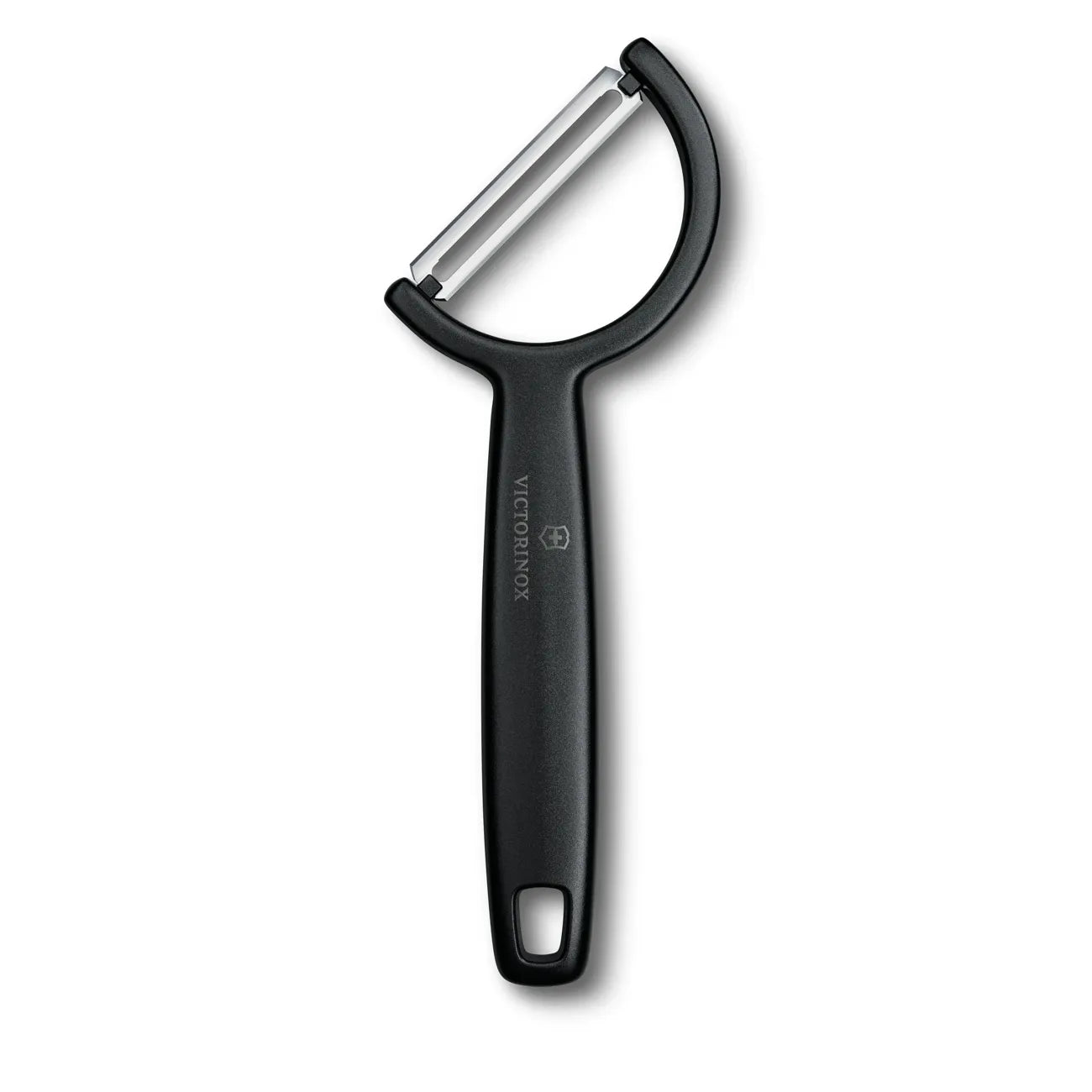 This 11cm black pivoting Rapid Peeler balances ergonomic comfort, precision cutting, and Swiss engineering for efficient kitchen performance and ease of use.