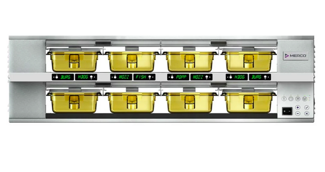 A premium, commercial-grade double-sided heated food holding cabinet expertly designed for professional kitchens, catering, and foodservice operations. Featuring innovative DuoHeat technology, this unit directly transfers heat from the bottom with minimal heat loss while warm convected air flows from above, ensuring consistent temperature maintenance that preserves both crispy and juicy foods at their optimal serving quality. Its zone and shelf independent temperature management with easy-to-clean flush mount timer bars with colored lights indicate food freshness status, reducing waste and optimizing service efficiency. Constructed entirely from durable stainless steel with a cool touch exterior, the cabinet guarantees hygienic, safe, and robust operation in demanding commercial environments. It offers programmable menu settings via USB using MenuConnect software for quick, precise customization of temperatures and holding times across individual bins and day parts. Additional professional features include removable stainless steel tray seals to lock in moisture or maintain crispiness, CARECODE enabled online access for operations, training, manuals, and parts, and compatibility with optional single or double handle high heat pans and drain shelves for elevated food storage. Designed to improve kitchen workflow with pass-through access from both sides, this unit is ideal for busy foodservice operators seeking a versatile, high-performance commercial product holding cabinet that maximizes food freshness, safety, and operational efficiency.