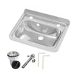 A high-quality, durable hand basin designed for commercial and public washroom environments. It features an 11.5 litre capacity and is constructed from 1mm thick 304 grade stainless steel, ensuring excellent corrosion resistance and long-lasting performance. This model includes two 35mm tap holes, a 50mm splashback, and a 40mm outlet for efficient drainage. The basin is finished with a mirror polish, providing a sleek, hygienic surface that is easy to clean. Safety is enhanced by a radius fascia design that eliminates sharp edges. The basin comes complete with heavy-duty wall brackets, an overflow kit compatible with OFK2, and a plug and waste, offering a comprehensive installation solution. Its wall mounted design makes it ideal for high-use areas such as schools, sporting clubs, and factory units.