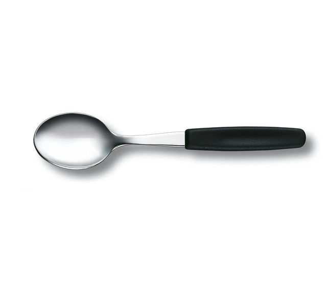 Tea Spoon, 12cm - Black by Victorinox is an elegant and practical utensil designed for everyday casual dining and tea service. Crafted from durable stainless steel, this teaspoon features a polished bowl complemented by a modern ergonomic black polypropylene copolymer (PPC) handle, offering a comfortable, non-slip grip for ease of use.