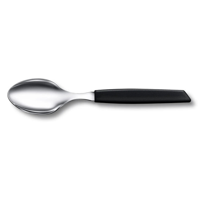 Table Spoon, 14cm - Black by Victorinox is an elegant and practical utensil designed for everyday casual dining. Made from durable stainless steel, this tablespoon features a lustrous bowl perfectly paired with a modern, ergonomically shaped black synthetic handle, offering a comfortable and secure grip.