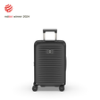 This carry-on measures approximately 55 cm height, 35 cm width, and 23 cm depth, weighing just 2.9 kg for effortless mobility. It includes a dual-tube telescopic handle system and four dual-caster spinner wheels for smooth, 360-degree maneuverability in busy airports and city streets. The sleek black design pairs with Swiss-engineered top and side handles for easy carrying, while its self-cleaning YKK® RC coil zippers enhance durability.