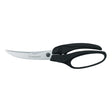 Professional Poultry Shears, 25cm - Black/Stainless are precision-crafted for effortless poultry preparation in professional kitchens. These shears feature curved, one-sided serrated stainless steel blades that provide excellent cutting power for poultry bones, joints, cartilage, and flesh with clean, precise cuts. The ergonomic synthetic black handle is designed with a long eye for comfort and offers a non-slip grip to ensure safety and control during use. Equipped with a smart spring mechanism, the shears allow easy handling and fast cutting action, and include a safety lock for secure storage. The shears are adjustable, easy to disassemble for thorough cleaning, and dishwasher safe for convenience. Made in Germany and weighing approximately 168 grams,
