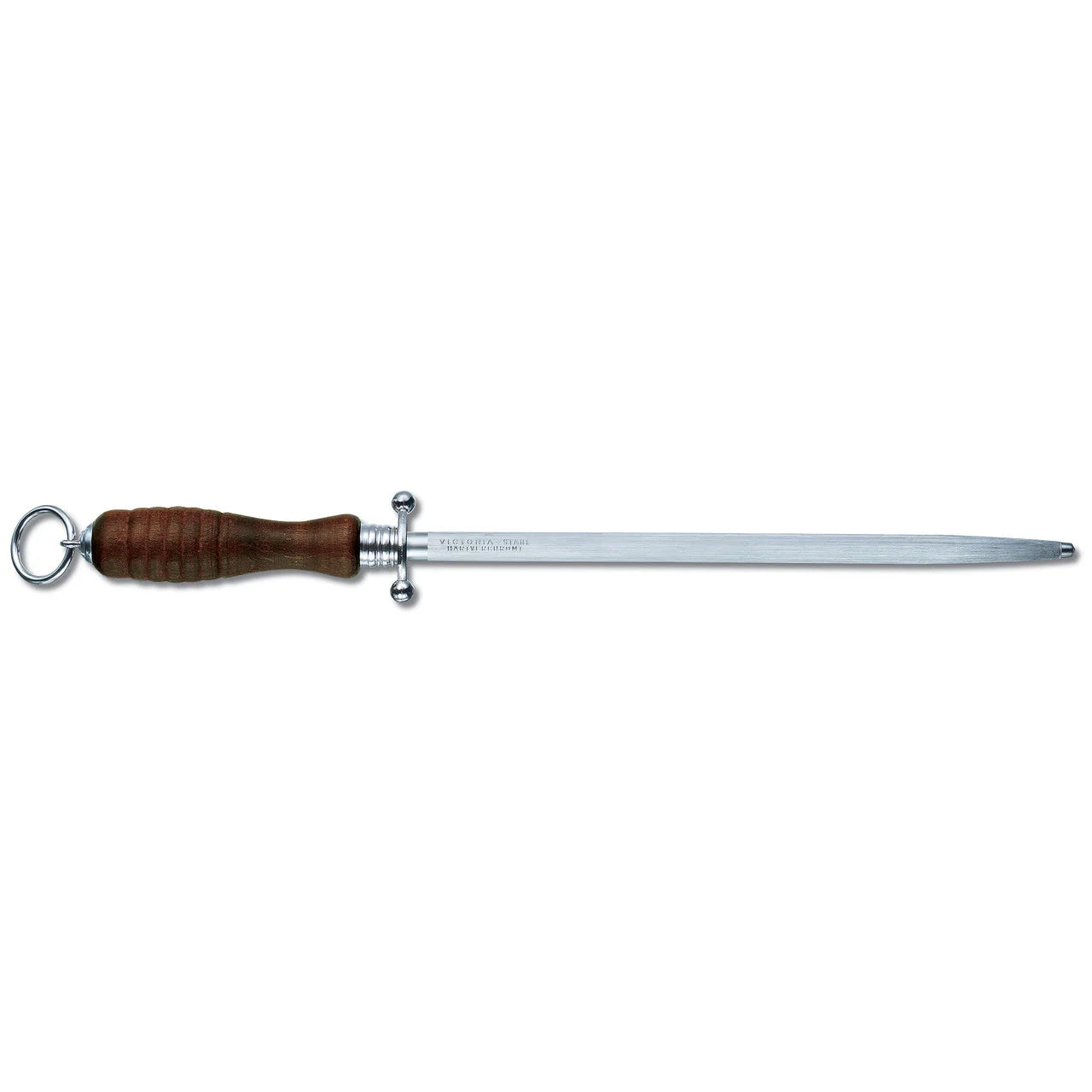 Professional Honing Steel, Round Middle Fine Cut 27cm - Beechwood by Victorinox is a refined sharpening tool designed to maintain and restore sharp edges on a variety of kitchen knives, enhancing cutting precision and efficiency. Featuring a 27 cm round rod with a middle fine cut surface, this honing steel gently realigns the blade's edge to preserve optimal sharpness without excessive abrasion.