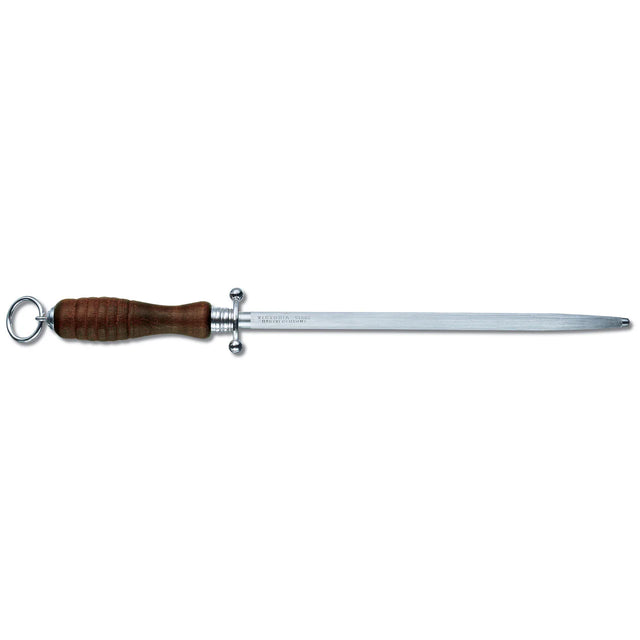 Crafted with a classic beechwood handle, it combines durability with traditional aesthetics and provides a comfortable, ergonomic grip for safe, controlled use during honing. Designed for knives with hardness up to 65 HRC, this honing steel is ideal for professional chefs and home cooks aiming for consistent blade performance. Its high-quality construction embodies Swiss craftsmanship, offering long-lasting performance and reliability.