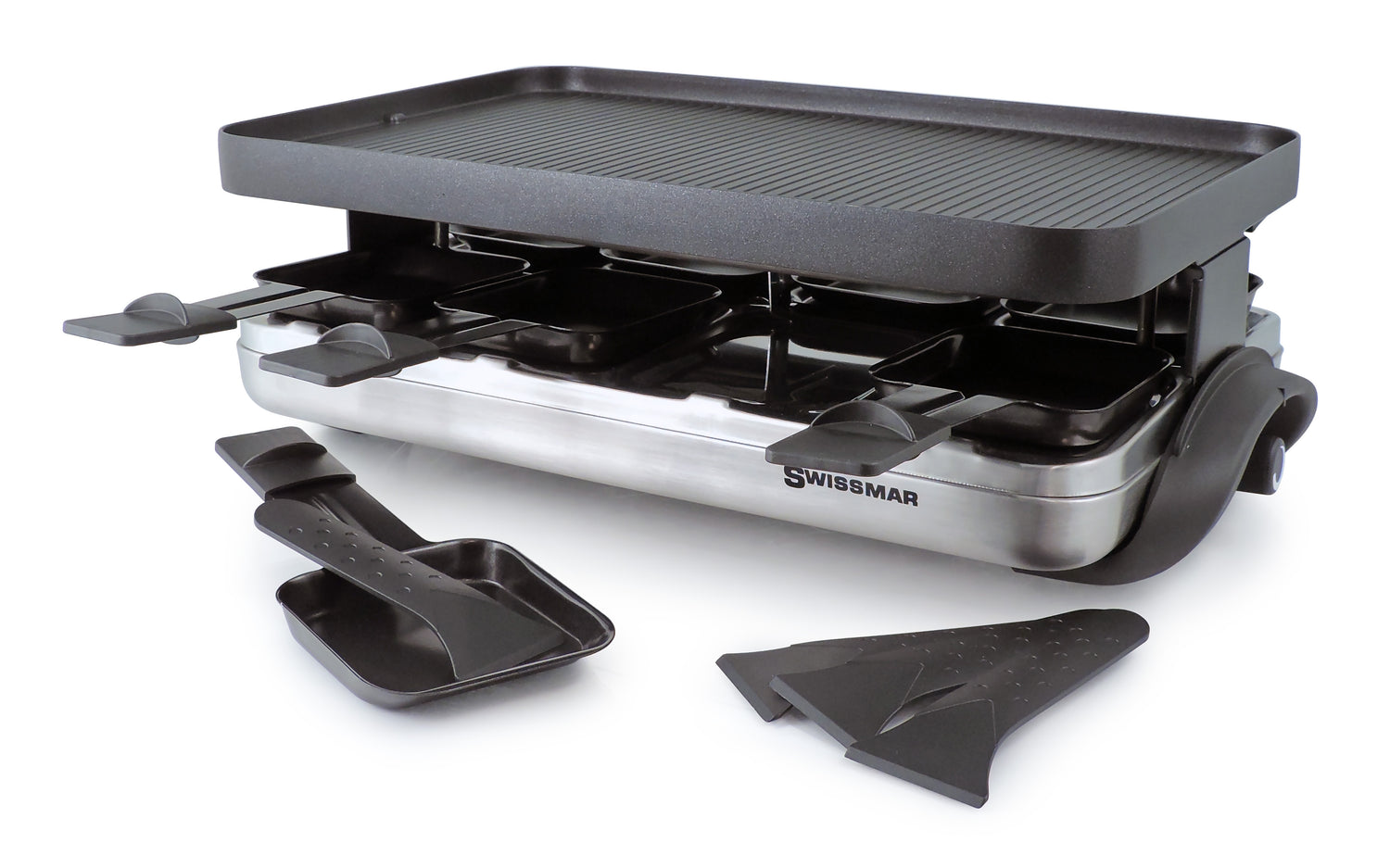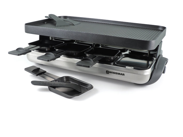 Valais 8 Person Raclette Party Grill w/Reversible Grill Plate - Stain/Steel Base
