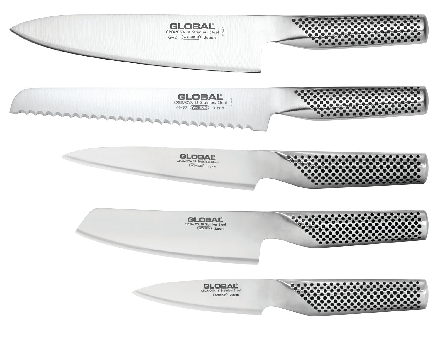Dimensions: Comprises: Paring Knife 10cm, Vegetable Knife 14cm, Utility Knife 15cm, Bread Knife 20cm, Cooks Knife 20cm, Walnut Storage Block