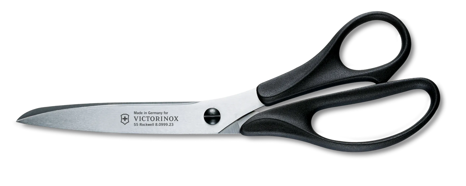 All Purpose Scissors, 23cm - Stainless by Victorinox are versatile, high-performance scissors designed for a wide range of cutting tasks both at home and in professional settings. Crafted with ultrasharp stainless steel angled blades, these scissors deliver precision and ease in cutting through various everyday materials including paper, fabric, and lightweight packaging.