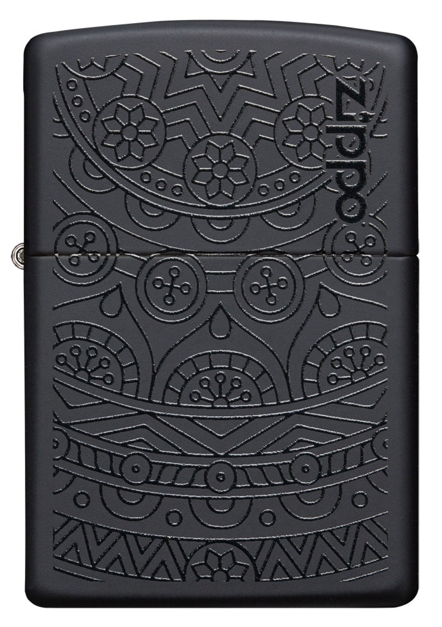 Zippo Swirl Pattern Black Matte Lighter | Subtle Filigree Tone-on-Tone Design | Durable All-Metal Construction | Windproof and Refillable Zippo