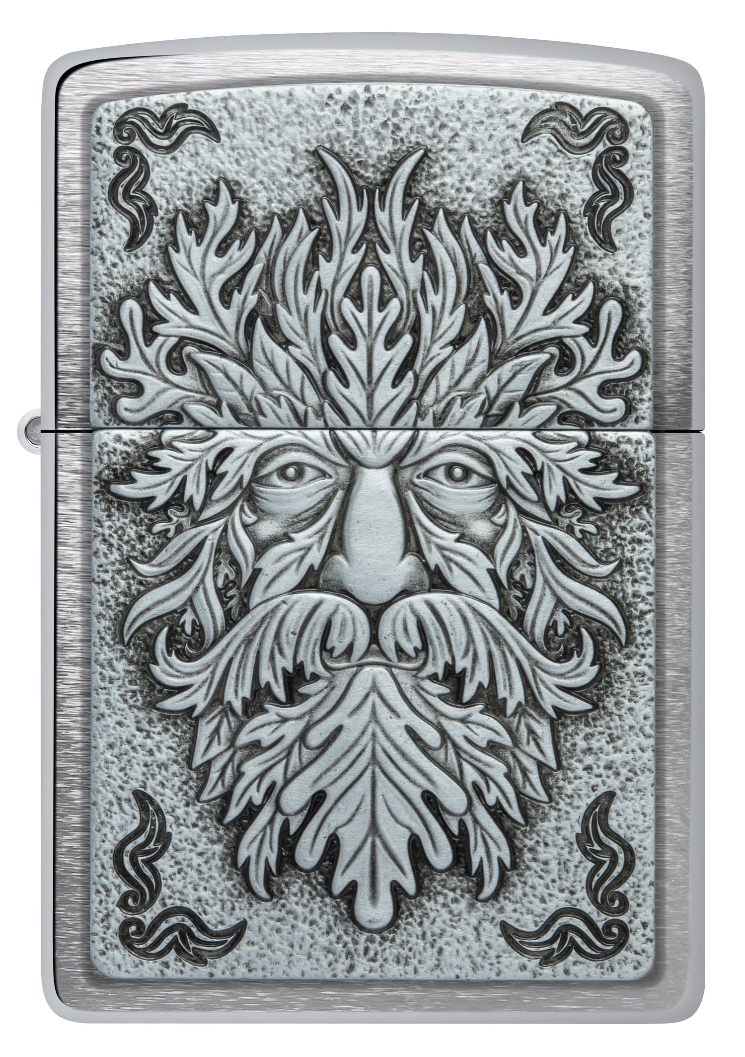 Zippo Green Man Emblem Lighter | Brushed Chrome Finish | Intricate Leafy Green Man Emblem Design | Genuine Zippo Windproof Lighter | Durable All-Metal Construction | Refillable with Lifetime Warranty