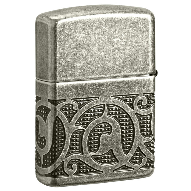 Zippo 28973 Pattern Design Lighter | Armor® Antique Silver Plate Finish | Thick Durable Case Construction | Classic Zippo Windproof Flame | Refillable and Reliable
