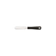 This butter spreader provides durable stainless steel construction, comfortable black handle, and bulk convenience, making it essential for professional and efficient spreading in food service operations.