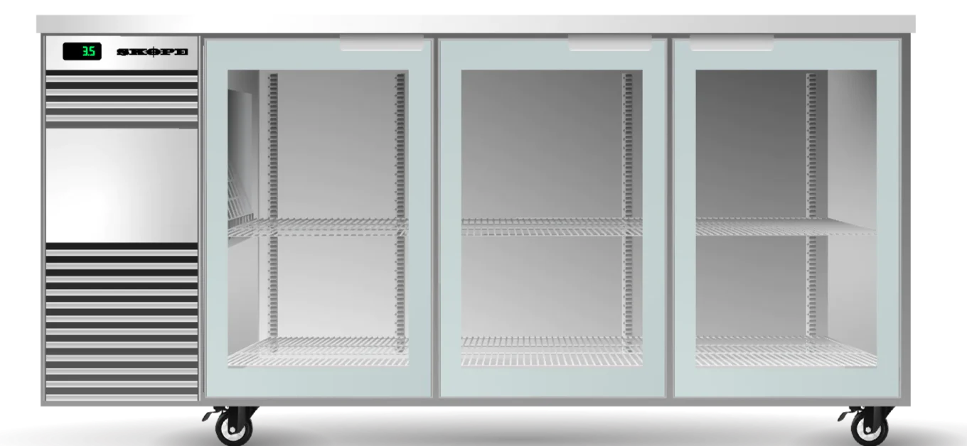 Offering a spacious 635-litre gross capacity, the fridge is equipped with six adjustable powder-coated wire shelves to support flexible storage configurations, maximizing organization and workflow efficiency. Its self-contained refrigeration system utilizes eco-friendly R290 natural refrigerant, delivering precise temperature control from 1°C to 4°C (adjustable up to 15°C), suitable for maintaining product freshness and food safety. The fully front-breathing modular cartridge system enables seamless installation underbars or counters without requiring side or rear clearances.