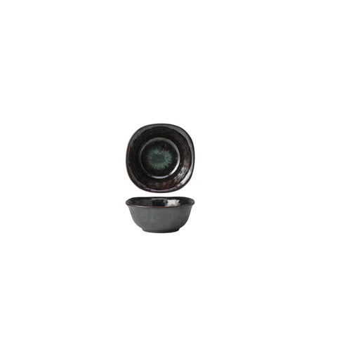 Tablekraft Fusion Flower Dipping Bowl 157x67mm Patina (Sold in sets of 6) is a beautifully hand-crafted bowl made from durable vitrified porcelain with a unique artisanal finish. Each piece is hand-dipped into the Patina glaze from top to bottom, leaving a natural porcelain band around the rim and base, which provides an organic and earthy aesthetic inspired by the serene hues of earth and water. Measuring 157mm in diameter and 67mm in height, the bowl is ideal for sauces, dips, and small servings, combining practical durability with a sophisticated, nature-inspired design. It is dishwasher safe, perfect for commercial hospitality settings seeking to elevate their table presentation with elegant, handcrafted dinnerware.